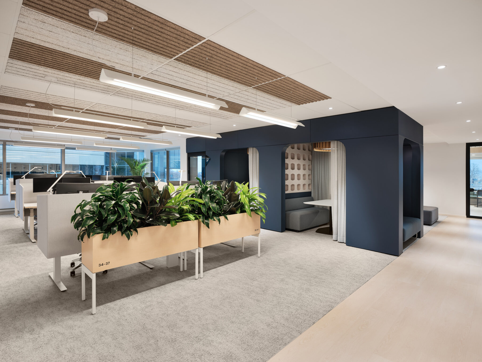 Le principal défi résidait dans le respect rigoureux du cahier de standards de la BDC. L’équipe de conception a su relever cet enjeu avec finesse, en intégrant ces exigences tout en insufflant une signature distinctive et un concept innovant. Ainsi, l’aménagement reflète l’engagement de VAD à concevoir des milieux de travail porteurs de sens, où l’équilibre des usages, la qualité de l’expérience et le bien-être des occupants s’unissent pour créer un environnement durable et rassembleur.